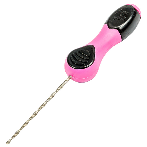 Increased length nut drill for hard baits like tiger nuts, or drilling through cultured hook bait cores. Ergonomic soft touch handle and pink/black finish.